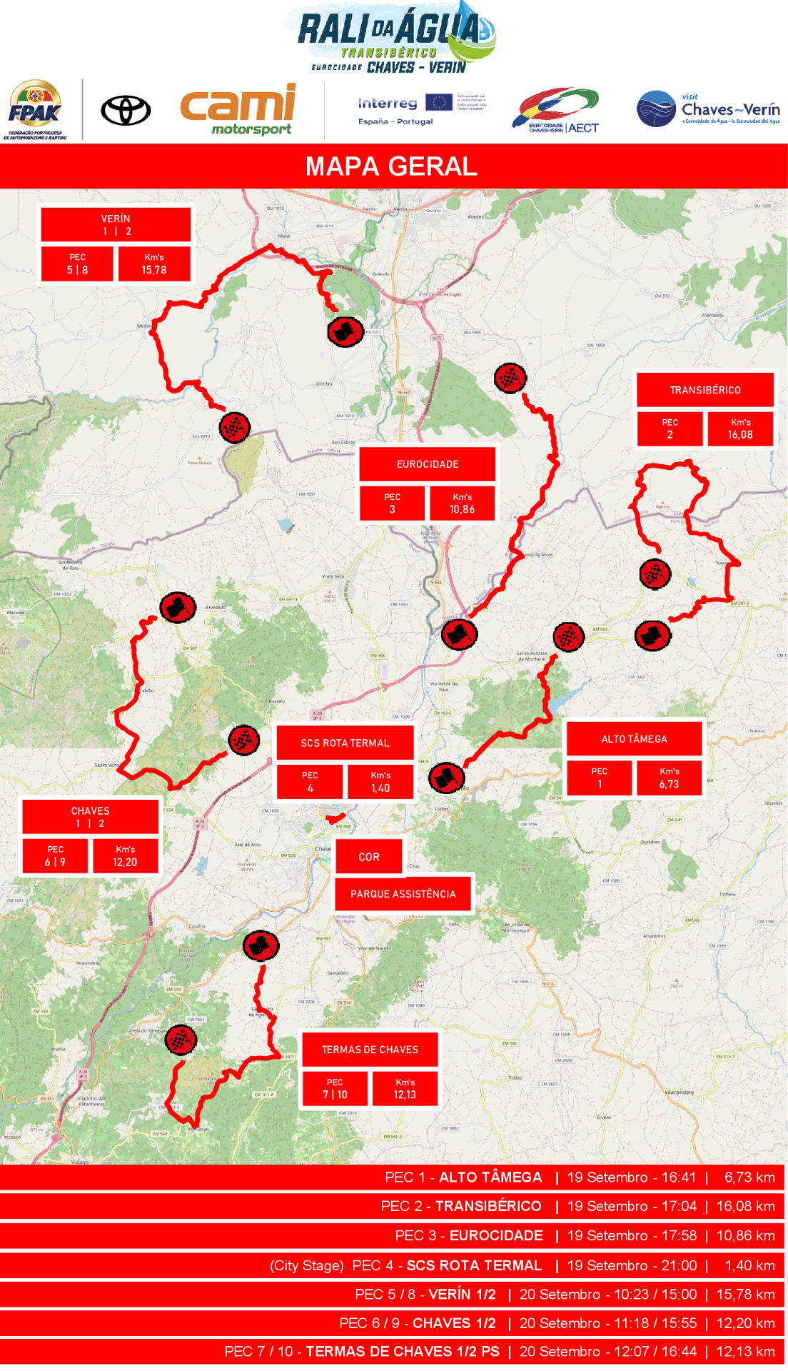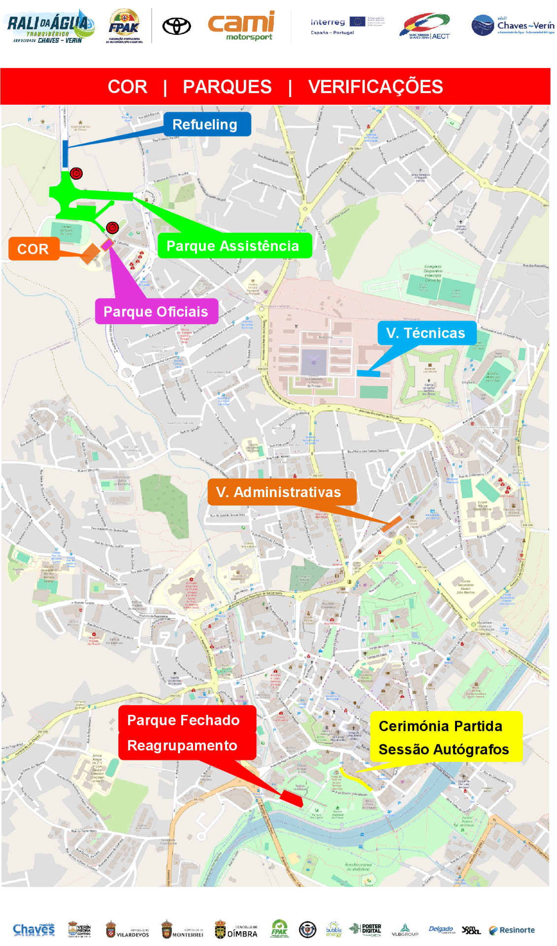 Parque de Assistência + COR - Parques - Verificações + Mapa Geral + Mapa Shakedown + Mapa PEC1 + Mapa PEC2 + Mapa PEC3 + Mapa PEC4 + Mapa PEC´s 5 e 8 + Mapa PEC´s 6 e 9 + Mapa PEC´s 7 e 10 + Acessos a Zonas de Espectáculos